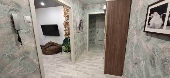 В квартире сделан свежий, качественный ремонт: Полностью заменено напольное покрытие - ламинат, в коридоре и санузеле плитка. Светлые обои, создающие атмосферу тепла и уюта. Застекленный балкон, просторная кладовка для хранения вещей.